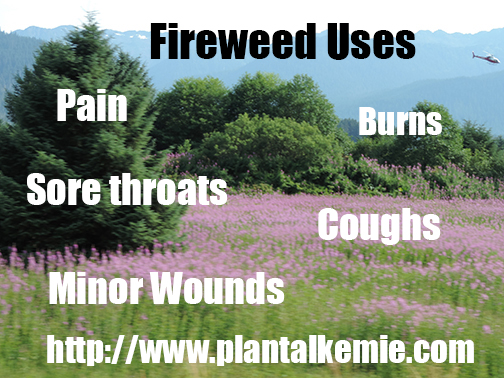 It has some antibacterial properties3, and it is effective against some types of yeast or other fungi2,3,4. Fireweed is anti-inflammatory3,4, soothing2,4, and calmative4. It is astringent2,3,4 and it is used for pain (it is analgesic), including sore throats2,3,4. It is effective for coughs3,4. The leaves can be used for minor wounds2,3,4 and burns3,4.